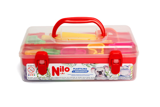 CAJA DE HERRAMIENTAS Y PLASTILINAS NILO + MOLDES + RODILLO