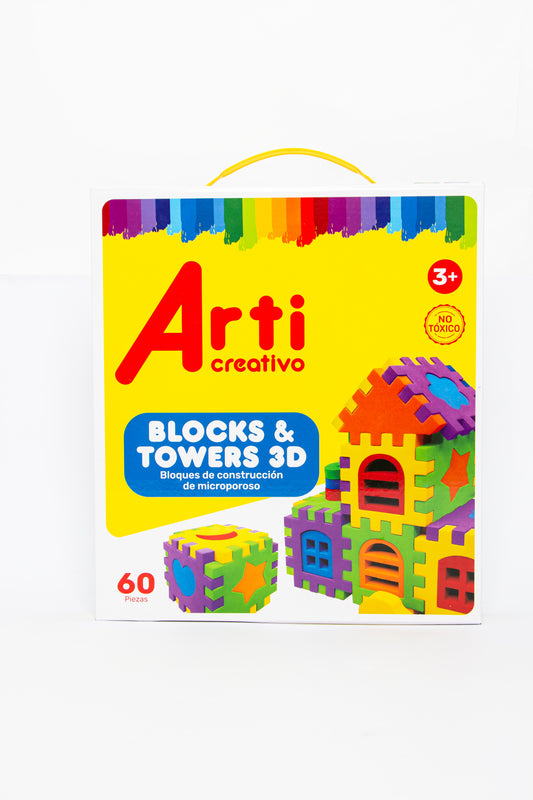 JUEGO DE CONSTRUCCION EN GOMA EVA "BLOCKS & TOWERS" X 60 PZAS. ARTI CREATIVO