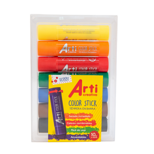 TÉMPERAS EN BARRA "COLOR STICK" ARTI CREATIVO - BÁSICO X 7 UND.